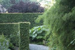 Dat kan prachtig zijn en wij kunnen er zeker wel erg van genieten. Ook voor ons zijn structuren, vormen en lijnen belangrijk, maar dan vooral in de beplanting: gesnoeide hagen, blokken en andere vormen van taxus, buxus, haagbeuk e.d., strakke randen van gazons, van borders, van paden.